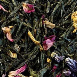 Thé vert aromatisé avec des pétales de fleurs, arômes fraise, pamplemousse et vanille. Odeur...