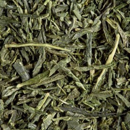 Thé du Japon sous forme de fines feuilles d'un vert émeraude plates et aigües, nécessitant une...