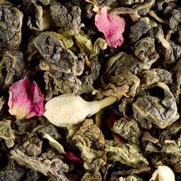 Ce thé vert agrémenté de fleurs de jasmin et de pétales de rose aux arômes de fleur d'aubépine et...