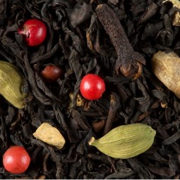 Ce thé noir mélangé aux épices indiennes réhaussées de morceaux de gingembre, de clous de...